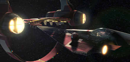 The solution is a separate booster ring equipped with its own power source and hyperdrive engines. The Jedi starfighter docks with the ring in a specially designed cradle. The Jedi Temple maintains a series of booster rings in an assigned orbit over Coruscant for Jedi starfighters as they are dispatched. Later generations of Jedi fighters employed larger rings for greater operational range.